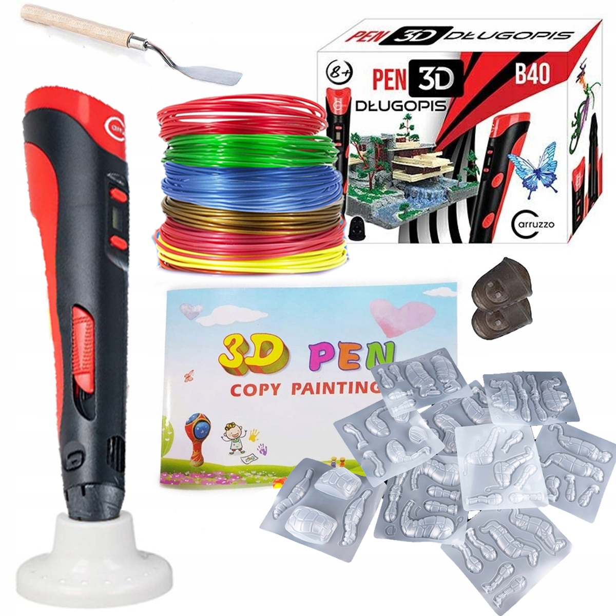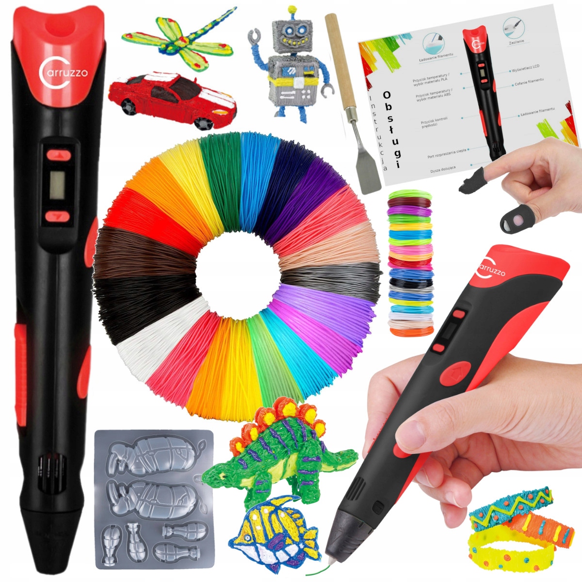 3D-печать теперь — это не только возможность создавать профессиональные концептуальные проекты, но и способ подготовки пространственных художественных проектов. Наши 3D-шаблоны и нить общей длиной 220 м позволят вам создать множество интересных композиций. Это будет подходящее решение для людей, которые только начинают знакомство с ручками или 3D-принтерами.