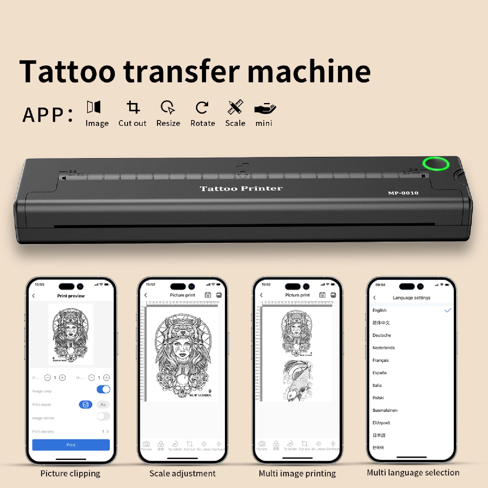 2. Простота в эксплуатации: машина автоматически ремонтирует переводную бумагу. Просто используйте приложение и эффективно дублируйте рисунки татуировок на копировальной бумаге.