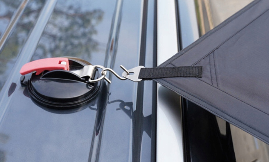 Присоска с крючками используется для крепления элементов кемпинга, таких как: навесы, навесы, брезенты, брезенты, навесы и кровельные элементы или аналогичные формы материальных покрытий.