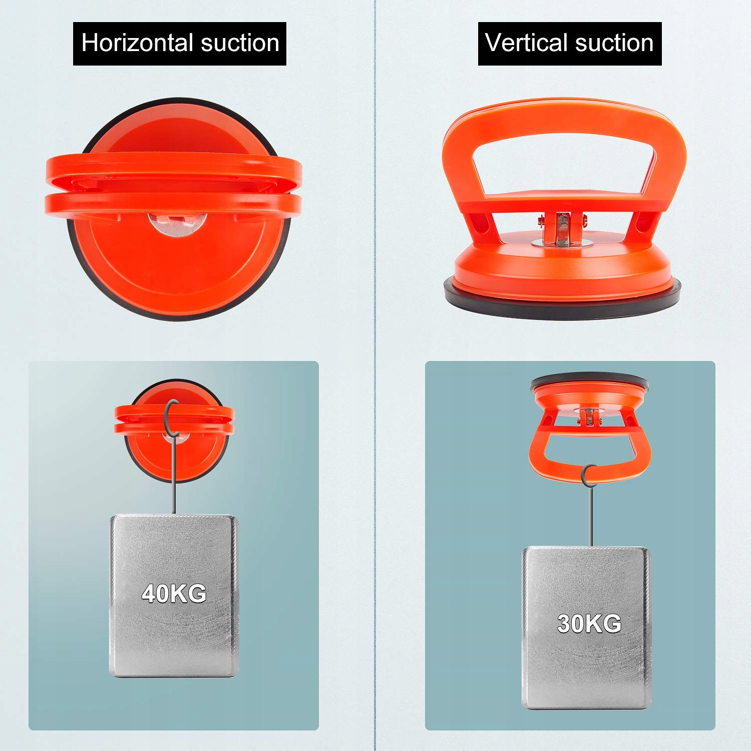 Большая тяговая сила:Две резиновые присоски диаметром 118 мм/4,6 дюйма, каждая с максимальной горизонтальной силой всасывания 40 кг/88 фунтов и одной вертикальной силой всасывания 30 кг/66 фунтов. Быстрозапирающаяся ручка с пружинным механизмом облегчает переноску.