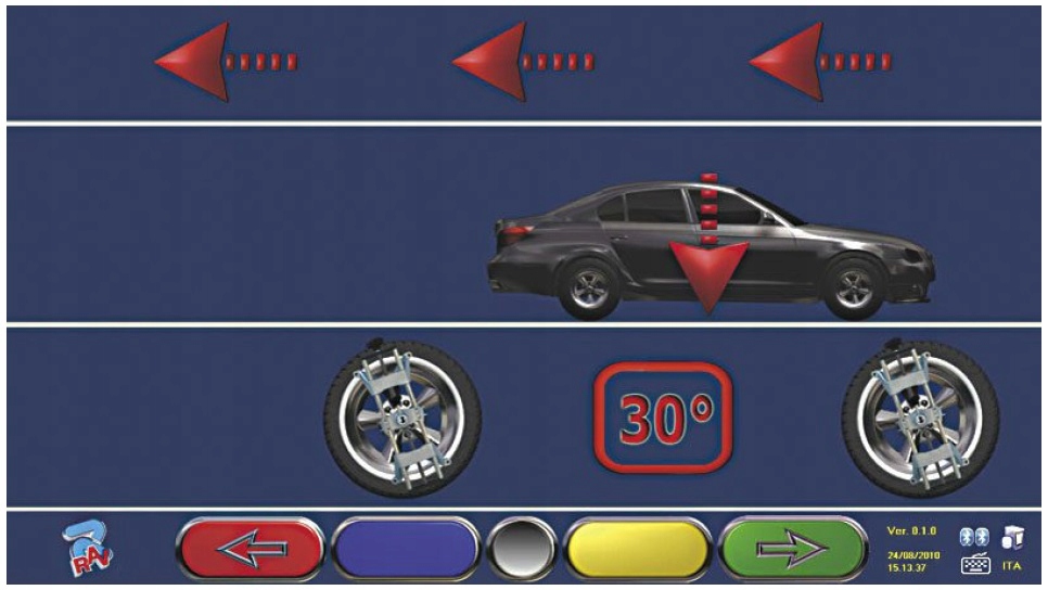 - Все углы, характерные для обеих осей транспортного средства, измеряются 4 измерительными головками, оснащенными 8 датчиками CCD-технологии,