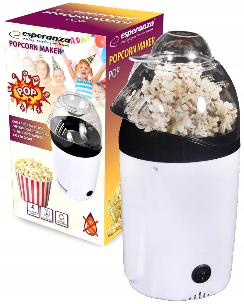 С нашей аппаратурой для попкорна Esperanza POP вы сможете приготовить полезную и вкусную закуску за 2~3 минуты. Благодаря циркуляции горячего воздуха попкорн будет приготовлен здоровым способом, без использования масла - совершенно БЕЗ ЖИРА!