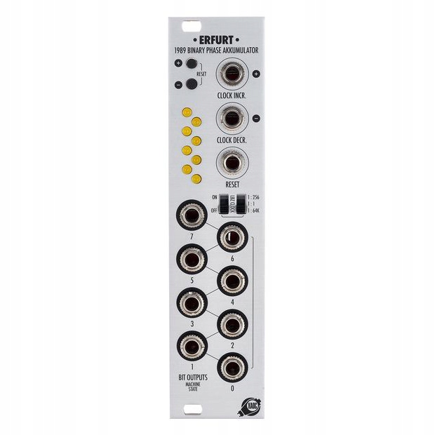 Эрфурт от Xaoc Devices — это устройство из подсистемы Лейбница, которое можно использовать в качестведелителя тактовой частоты и звуковой частоты с 8 выходов в качестве двунаправленного двоичного счетчика или в качестве программируемого цифрового генератора.