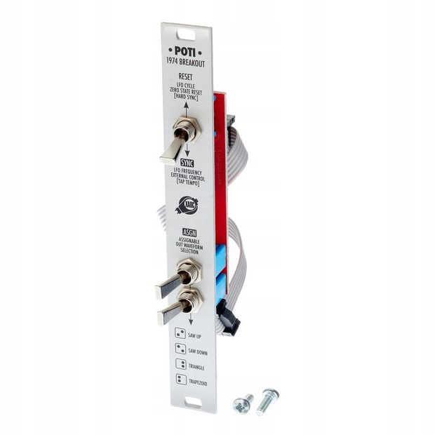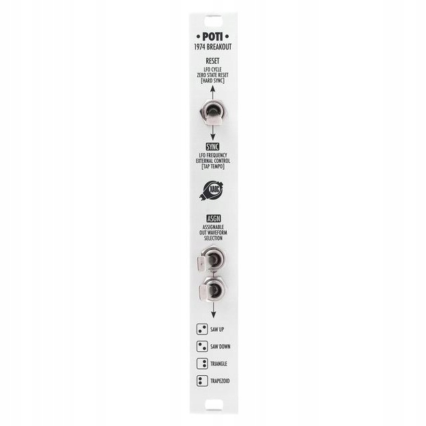Xaoc Devices Poti — это простой и очень полезный расширитель для модуля Batumi Quad LFO от Xaoc Devices. Панель обеспечивает немедленный доступ к функциям даты, которые изначально были выбраны с помощью перемычек на задней панели модуля: Режим сброса/синхронизации и выбор назначенной формы сигнала.