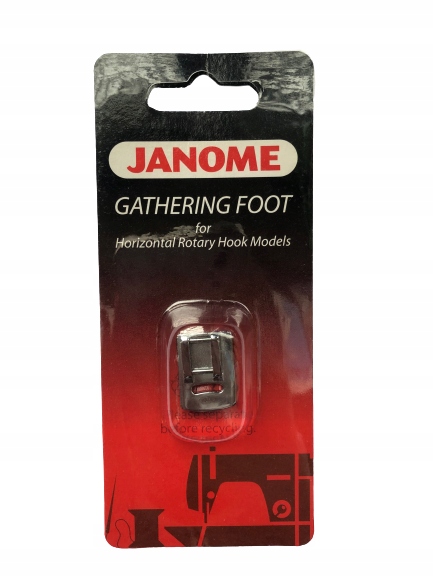 Стопа позволяет создать элегантную и ровную сборку. Поэтому это идеальное решение для людей, которые хотят украсить платья, блузки, шторы или оригинально создать украшения. Наилучшие результаты будут достигнуты на тонких и деликатных тканях. В случае более толстых материалов сморщивание будет более деликатным. Жесткие ткани можно смягчить, слегка сбрызнув их водой перед складыванием. Внешний вид сборки также зависит от длины стежка и натяжения верхней нити – чем выше значения длины и натяжения, тем плотнее будет сборка. С помощью этой лапки следует собирать только один слой ткани и не тянуть ее во время шитья.