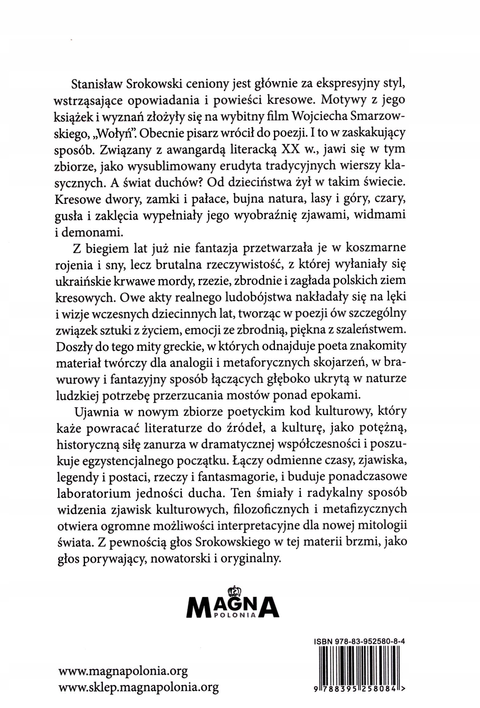 Станислав Сроковски ценится главным образом за выразительный стиль, шокирующие истории и пограничные романы. Мотивы из его книг и конфессий составляли выдающийся фильм Wojciech Smarzowski, «Wołyń». В настоящее время писатель вернулся в поэзию. И это удивительно. Связанный с литературной авангардой 20 -го века, появляется в этой коллекции в качестве возвышенного эрудита традиционных классических стихов. А мир призраков? Он жил в таком мире с детства. Крезоу корты, замки и дворцы, пышная природа, леса и горы, заклинания, объятия и заклинания наполнили его воображение явлениями, спектрами и демонами. На протяжении многих лет фантазия больше не превращала их в кошмарные рой и мечты, а в жестокую реальность, из которой появились украинские кровавые убийства, бойня, преступления и истребление польских пограников. Эти акты реального геноцида были перекрыты и видения ранних детских лет, создавая в поэзии эти особые отношения между искусством и жизнью, эмоциями с преступностью, красотой с безумием. Греческие мифы пришли к этому, в котором поэт находит отличный творческий материал для аналогии и метафорических ассоциаций, смешно и причудливым способом, связывающим необходимость переключения мостов над эразами, которые глубоко скрыты в человеческой природе. Он раскрывает культурный код в новой поэтической коллекции, который делает литературу возвращаться к источникам и культуре, как мощная, историческая сила, погружается в драматическую современность и ищет экзистенциальное начало. Он сочетает в себе разные времена, явления, легенды и персонажи, вещи и фантасмагории, и создает вечную лабораторию духовного единства. Этот смелый и радикальный способ увидеть культурные, философские и метафизические явления открывает огромные возможности для интерпретации для новой мифологии мира. Конечно, голос Сроковски в этом вопросе звучит как захватывающий, инновационный и оригинальный голос.