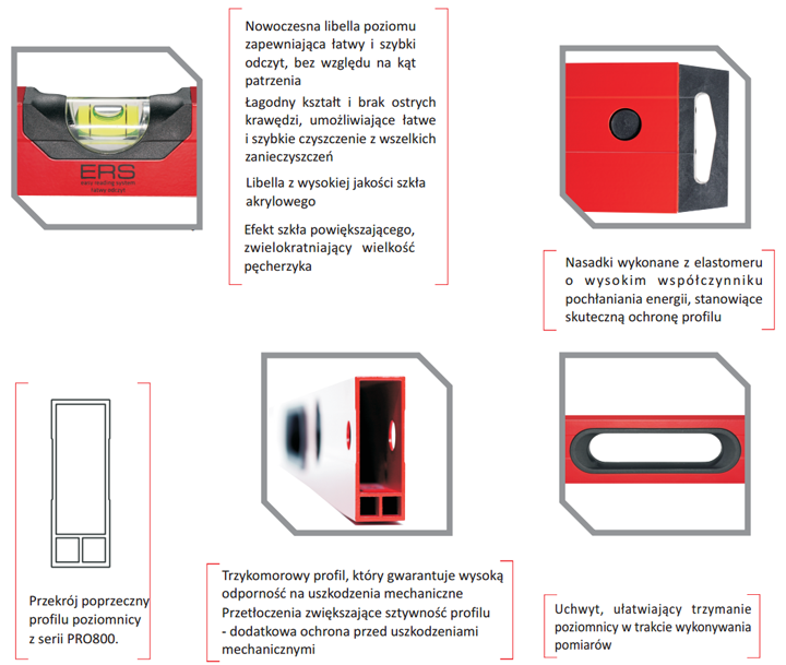 Современный уровень, обеспечивающий легкое и быстрое считывание независимо от угла обзора. Уровни серии PRO800 оснащены пузырьками специально разработанной овальной формы, обеспечивающей легкое считывание, так называемого ЭРС (система легкого чтения). Благодаря такому решению угол, под которым проводится измерение, становится совершенно неважным.