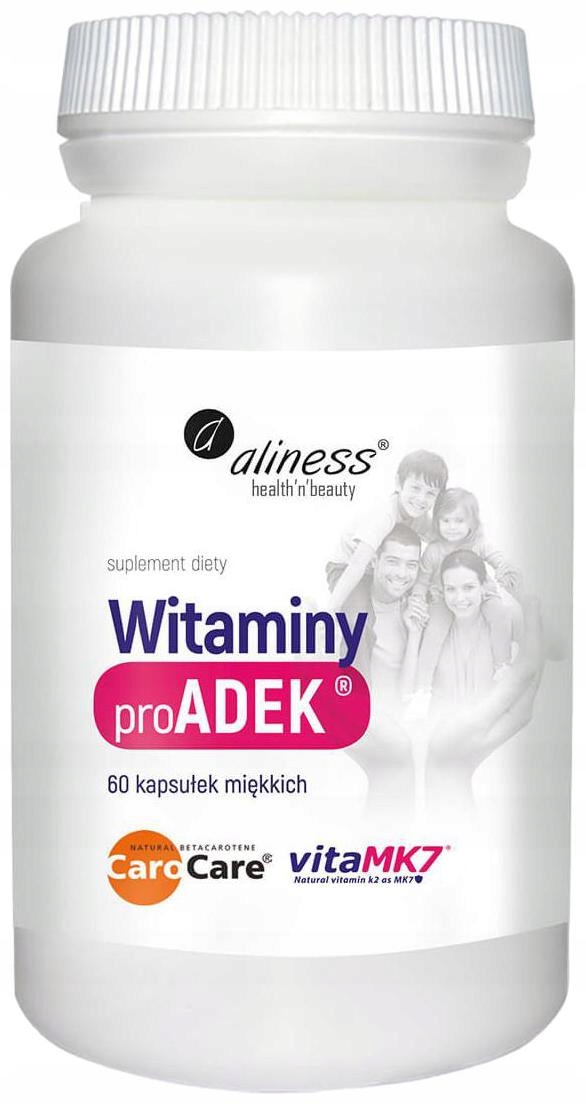 Витамины Aliness ADEK ProADEK® — это специальная формула, состоящая из витаминов A, D3, E и K2. Комплекс жирорастворимых витаминов АДЕК обладает широким спектром действия и обеспечивает правильное функционирование организма. Витамины, содержащиеся в добавке ProADEK®, имеют натуральное происхождение, что обеспечивает оптимальную эффективность и безопасность!