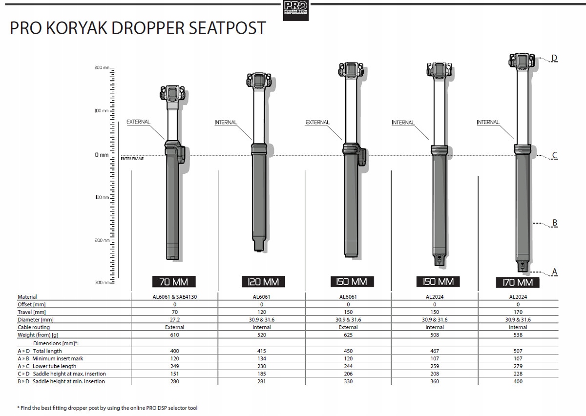 Подседельный штырь PRO Koryak Dropper 31.6 доп. пров. PRSP0224