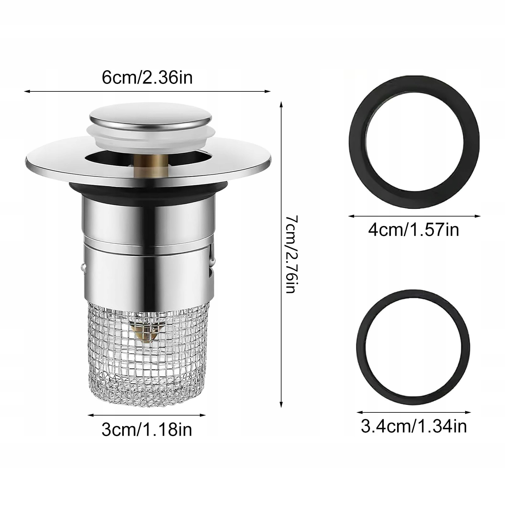 💧💧💧 【Эффективная фильтрация】 Внутри корзины имеется пробка. Чтобы предотвратить засорение раковины, которая может эффективно захватывать волосы и быстро стекать, не беспокойтесь о проблемах с засорением, это означает, что достигается эффективная фильтрация, в отличие от обычных кнопочных сливов. Подходит для ванн, ванных комнат, кухонных раковин и т. д.