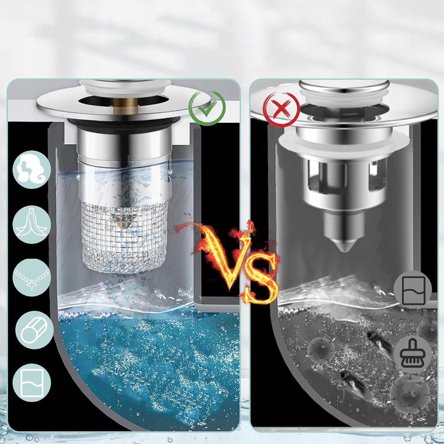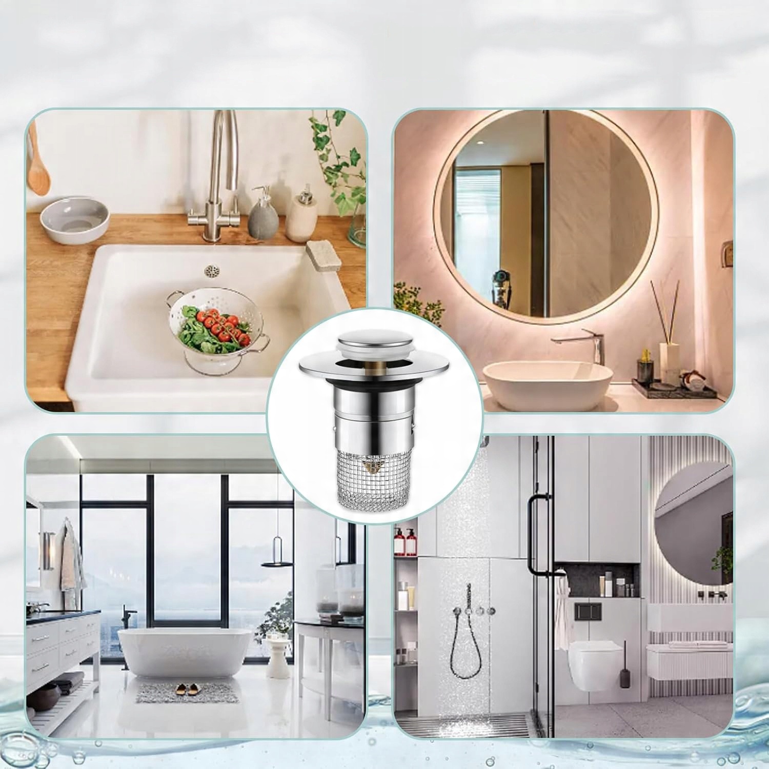 💧【Встроенный фильтр】По сравнению с обычными пробками для раковины, эти новейшие выдвижные пробки для раковины со съемной корзиной Противозасоряющийся фильтр, который предотвращает застревание волос, колец, ушных подвесок и грязи в сливе. Она полезна и эффективна, чем традиционная пробка для раковины.