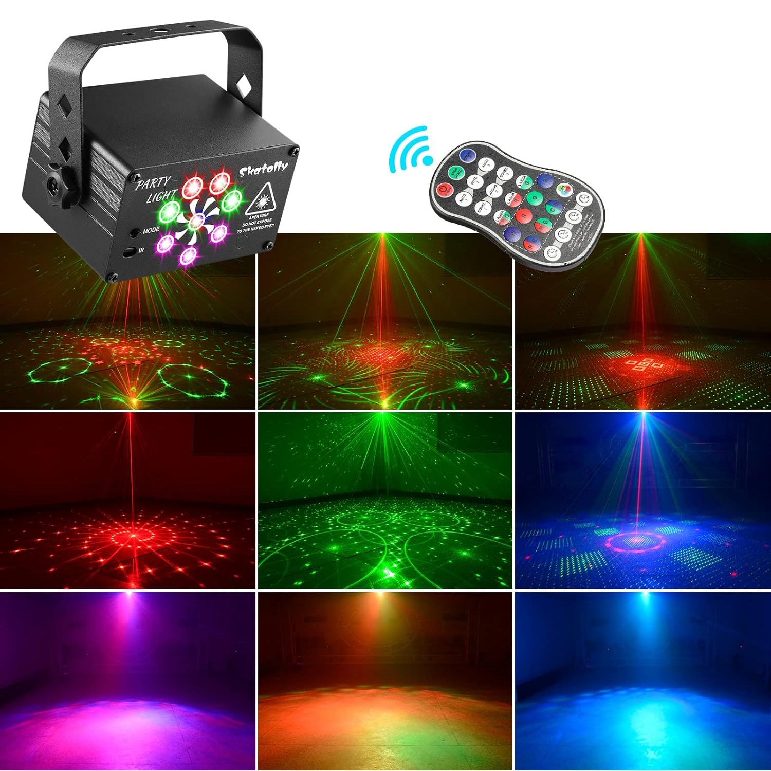 🌈 Многофункциональное освещение для вечеринок: стробоскоп имеет 8 линз (красная, зеленая и светодиодная подсветка), 240 узоров, цвет и скорость, которые меняются в ритме звука/музыки. Эти восхитительные комбинации делают ночь еще более живой и красочной.