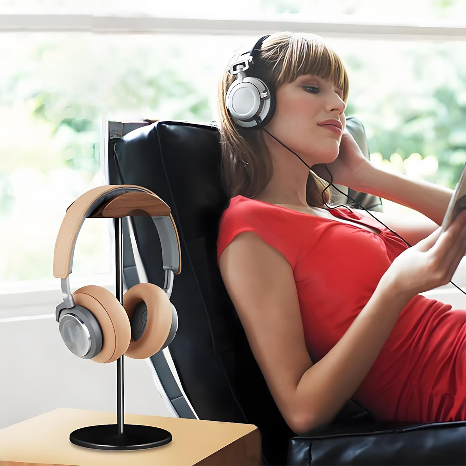 ДИЗАЙНЕРНАЯ ПОДСТАВКА ДЛЯ НАУШНИКОВ, ОРЕХ И АЛЮМИНИЙ, СТАБИЛЬНОЕ ОСНОВАНИЕ
