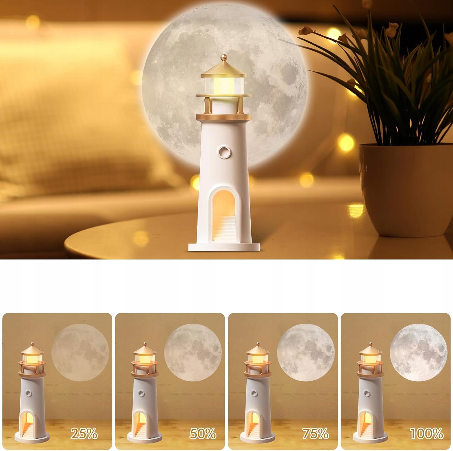 🌕 Морское латаральное растение проливает красивый лунный свет, превращая каждую комнату в тихое ночное небо. Эта лампа в форме маяка идеально подходит для спальни, детской комнаты или гостиной, создавая волшебную и расслабляющую атмосферу.