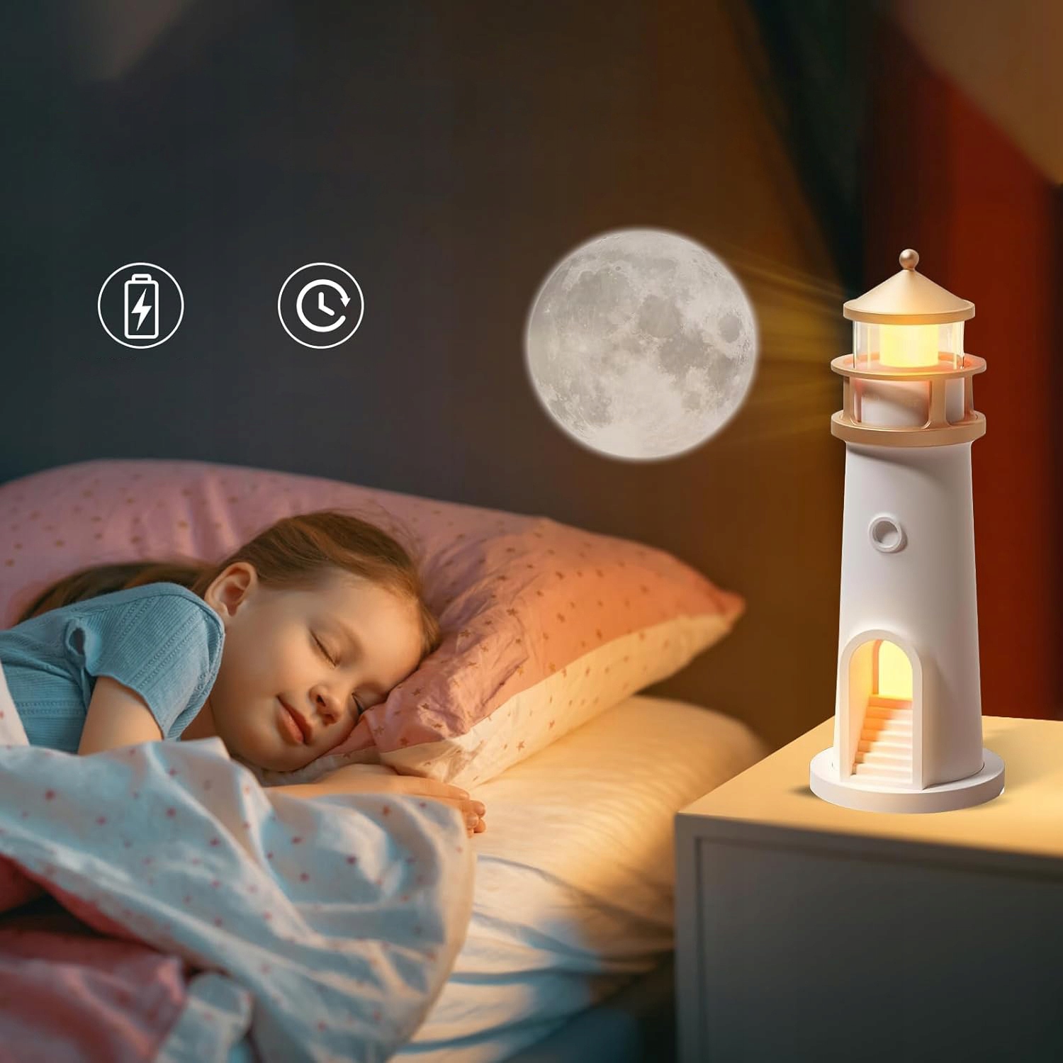 🌕 Эта проекционная лампа -это идеальный выбор для детей. Это подходит как для мальчиков, так и для девочек, позволяя им наслаждаться фантастическими легкими проекциями каждую ночь, что делает его отличным дополнением к их ночной лампе. Идеально подходит для детских вечеринок по случаю дня рождения, Рамадана, Дня детей, Рождества и т. Д. Его также можно использовать в качестве романтической ночной лампы и внутреннего украшения.