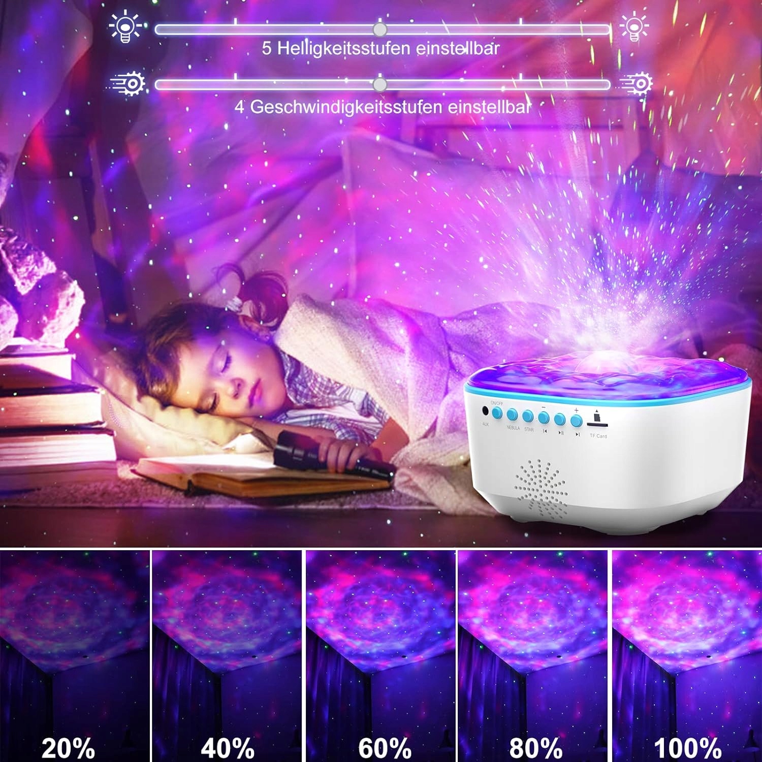 - Стальное небо ночной лампы с дистанционным управлением музыкой и адаптируйте проектор Galaxy, расслабляясь на кровати или диване, чтобы создать идеальное настроение.