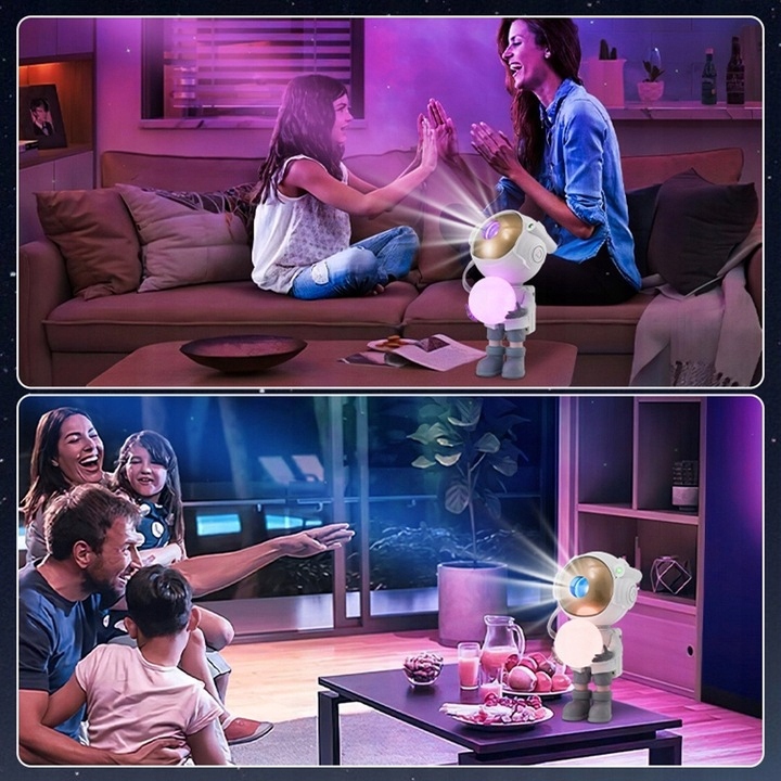 Внешность астронавта является новой и уникальной, она отсылает к звездному небу и теме галактики и позволяет вам исследовать огромное звездное небо. Голова космонавта, которую можно вращать на 360° с помощью магнитного притяжения, позволяет без ограничений проецировать туманность куда угодно. Кроме того, лунная база космонавта является съемной.