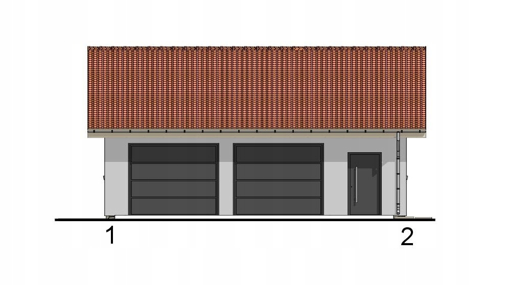 На передней стене гаража расположены две гаражные ворота и дополнительная входная дверь в подсобную часть гаража.