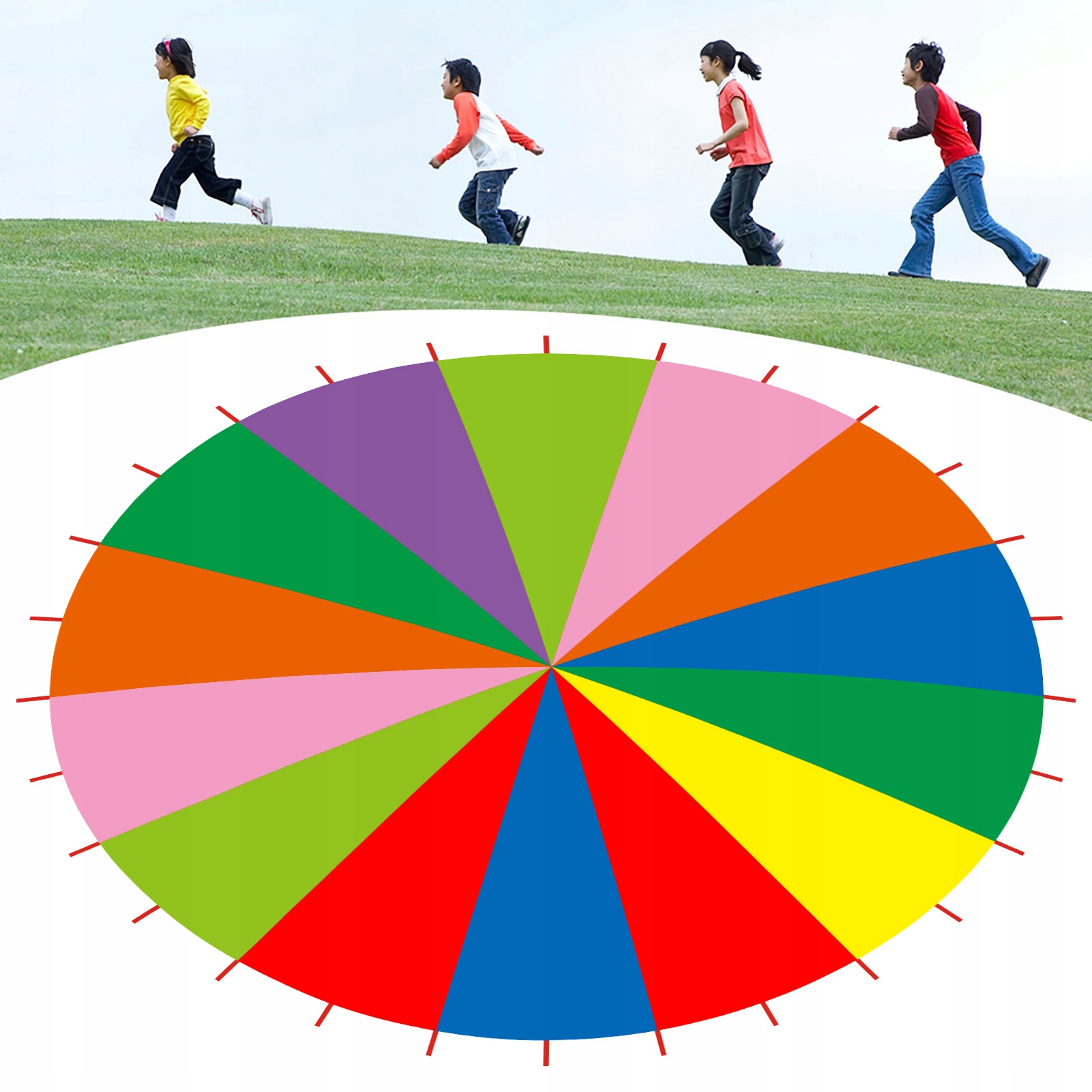 Этот детский игровой парашют изготовлен из оксфордской ткани, устойчив к истиранию, прочен и долговечен в использовании.