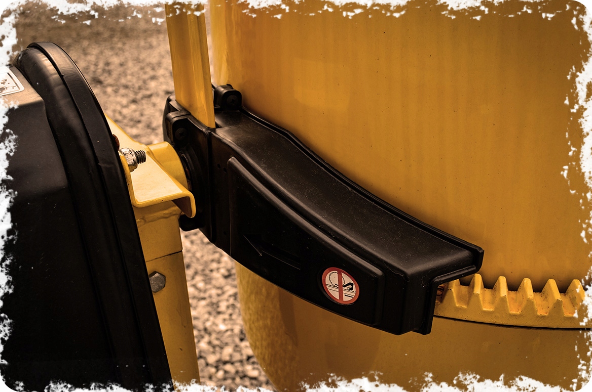 Бетономешалка имеет ручной фиксатор наклона барабана и стопорный диск, что является существенным удобством в повседневной работе. Диск наклона оснащен многоступенчатой регулировкой, что обеспечивает эргономичную работу с бетономешалкой - регулировка наклона под рост оператора.