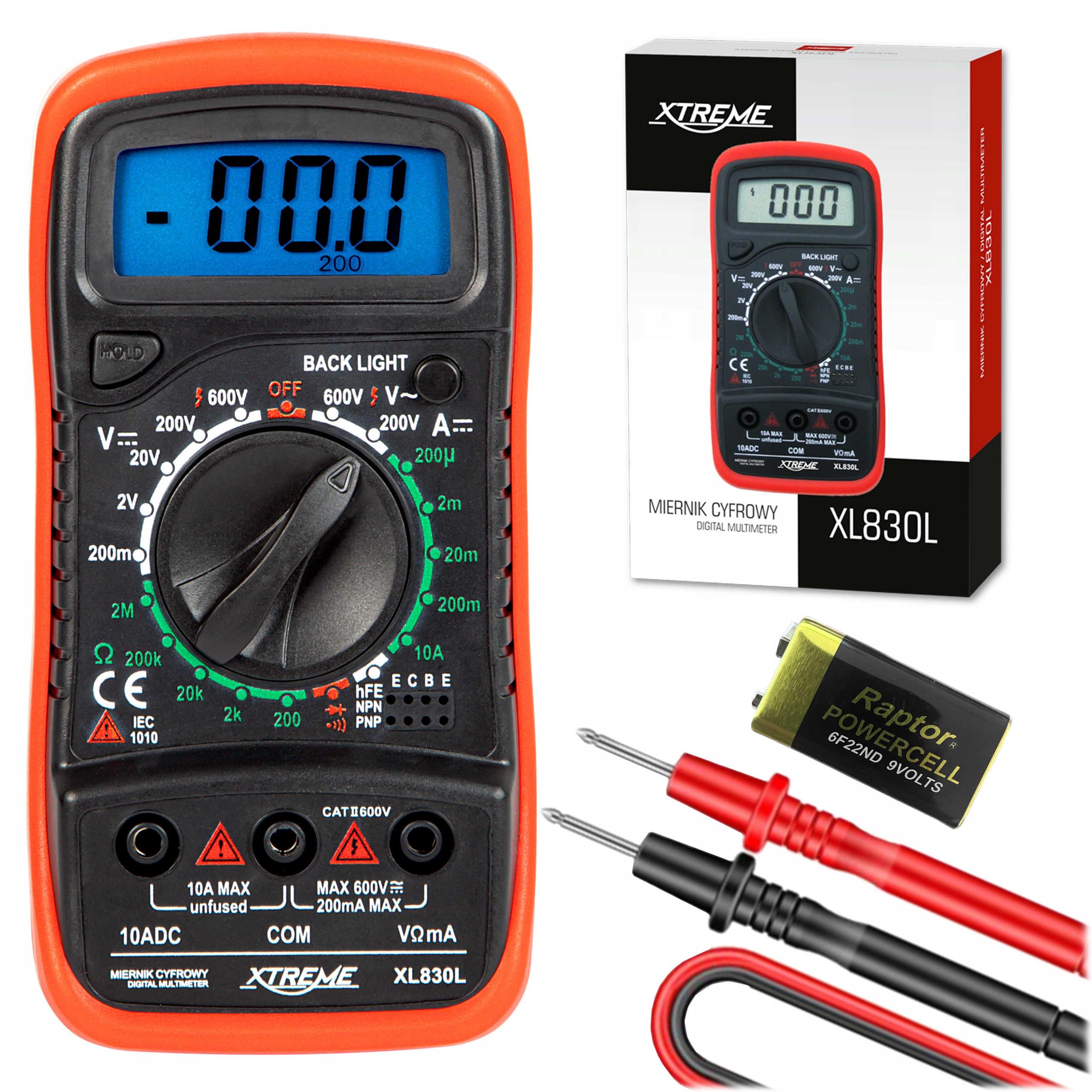 Meter Xtreme - это универсальный инструмент, предназначенный для семинаров или школ, но он также идеально подходит во время домашних и профессиональных задач. характеризуется очень разборчивым освещенным LCD -дисплеем и защитной и съемной резиновой крышкой, , а сзади существует поддержка, которая облегчит измерения чтения. Набор также был включен в необходимые кабели.