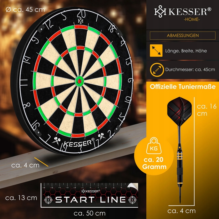 ✅ KESSER Classic Dartscheibe изготовлена из сизаля высокого давления, обеспечивающего идеальный вход в мишень, с очень тонкой оцинкованной проволокой и яблочко без пряжек, которое сводит к минимуму отражения. В набор входят 9 качественных дротиков для игры на самом высоком уровне.