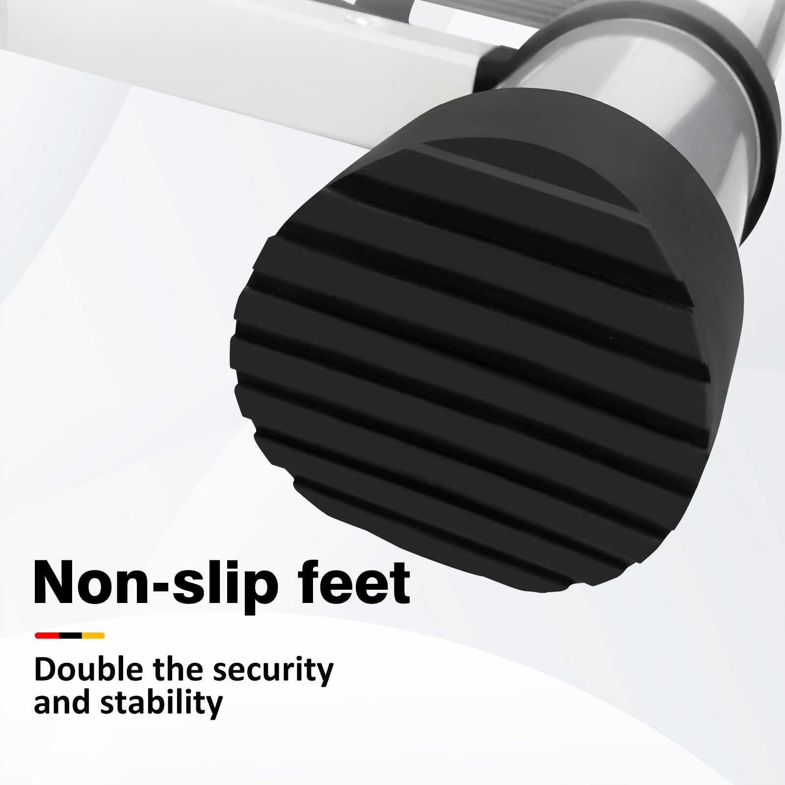 Ступеньки искусно спроектированы с вогнуто-выпуклыми противоскользящими полосами, обеспечивающими реальное физическое трение для надежной поддержки при каждом шаге. Нескользящие ножки у основания увеличивают сцепление с землей, работая в тандеме и обеспечивая общую устойчивость лестницы. В местах соединений используются утолщенные быстроразъемные застежки, позволяющие легко отсоединить чехол простым толчком для складывания. После фиксации они надежно закреплены, не раскачиваются и не трескаются под нагрузкой.