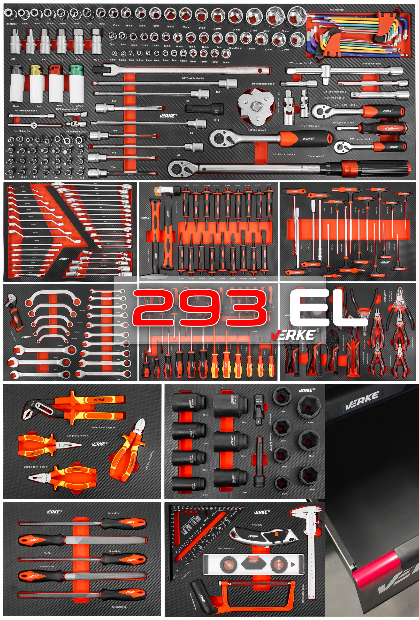ОБОРУДОВАНИЕ ИНСТРУМЕНТАЛЬНОГО ШКАФА 293 ШТ., 12 ЯЩИКОВ Verke Premium Line