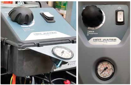 БОЛЬШОЙ ВСТРОЕННЫЙ МАНОМЕТР, ЗАПОЛНЕННЫЙ ГЛИЦЕРИНОМ, ПОЗВОЛИТ ВАМ КОНТРОЛИРОВАТЬ РАБОЧЕЕ ДАВЛЕНИЕ УСТРОЙСТВА, ТАК ЧТО МЫ МОЖЕМ РЕАГИРОВАТЬ, НАПРИМЕР. К ПАДЕНИЮ ДАВЛЕНИЯ ПОДАЧИ ВОДЫ