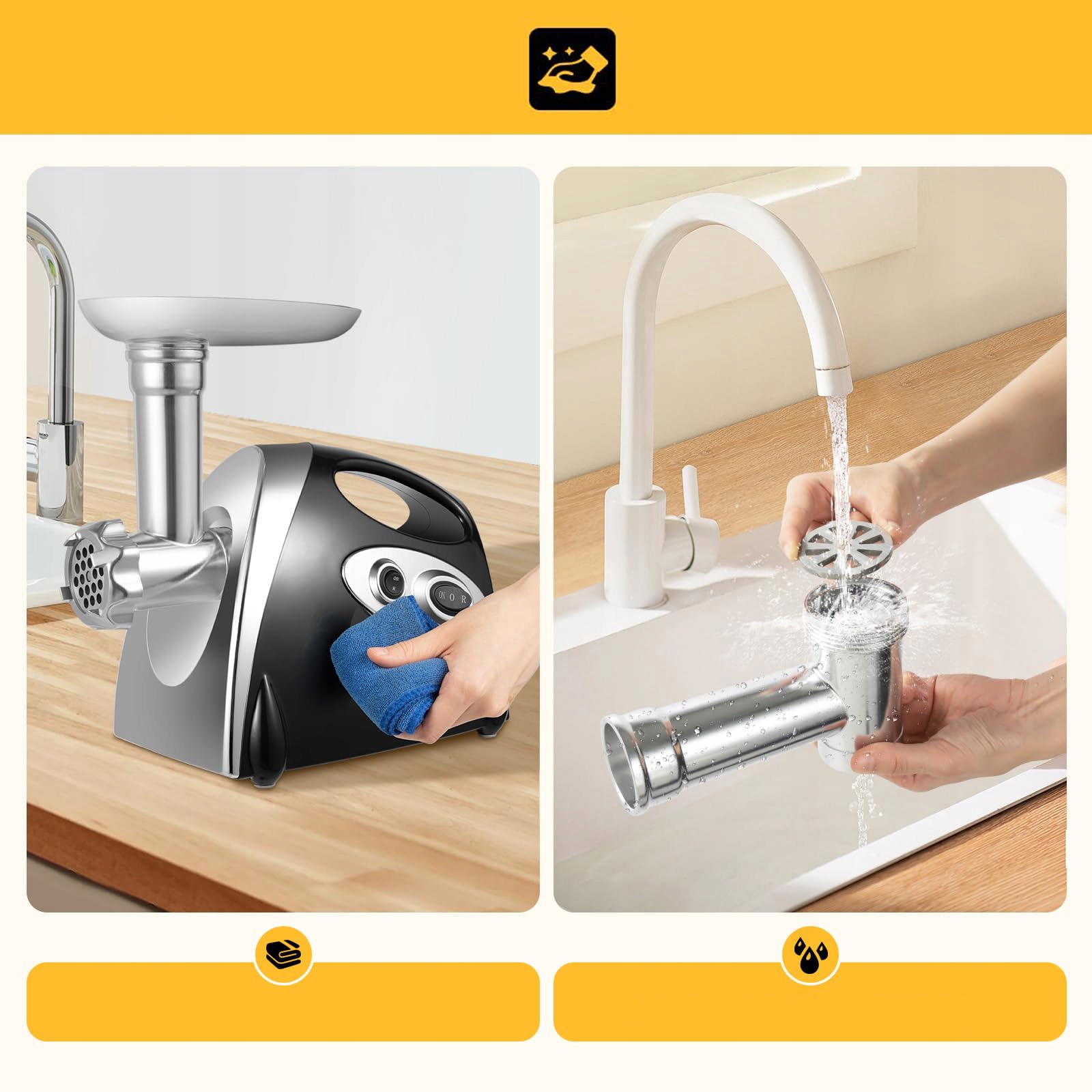 Легко в использовании: Электрическая мясо -машина (22 x 14,5 см/8,66 х 5,7 дюйма) удерживает больше пищи сразу без необходимости частого пополнения. Мясная машина удаляется, что облегчает чистку. Лезвия, режущая доска и электрическая мясная машина изготовлены из нержавеющей стали, а все элементы и аксессуары могут быть легко очищены водой.