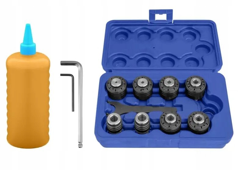 зажимные кусты для резьбов оснащены перегруженными сцеплениями с регулируемыми. Клачины в Tulejach первоначально регулируются к стандартным значениям моментов для определенных размеров потоков, но можно исправить эти настройки с помощью специального ключа, прикрепленного к набору. Он также содержит вращающееся руки с высоким уровнем рода, которая облегчает позиционирование резьбы на заготовке, обеспечивая точную и эффективную резку резьбы. Он предназначен для резки резьбов в различных материалах, таких как сталь, нержавеющая сталь, алюминий и цветные металлы
