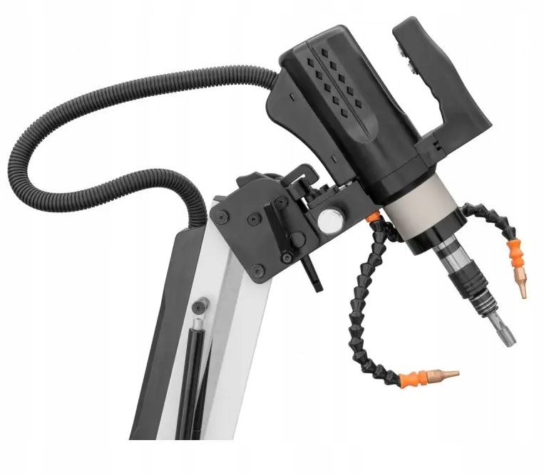Плековое плечо оснащено быстро обширной ручкой, которая позволяет легко и быстро прикреплять резьбы к отверстиям через и в течение ночи. Кроме того, устройство имеет вращающийся блок двигателя, включающий резьбовые резьбы под любым углом в диапазоне от 0 ° до 90 °. По сравнению с ручным резьбой, резьба предлагает большую точность и надежное резьбу с прямым углом (90 °)