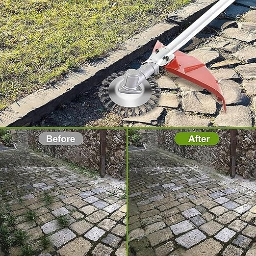 - . Стальная проволока HSS - Эффективно удаляет мох и сорняки с поверхности и мелких соединений, мы рекомендуем мягкую щетку для глубокой работы! С помощью дополнительного адаптера, благодаря которого подходят косы с отверстием 20 мм. Следовательно, он подходит для HASMETERS с силой 1,1-3 HP