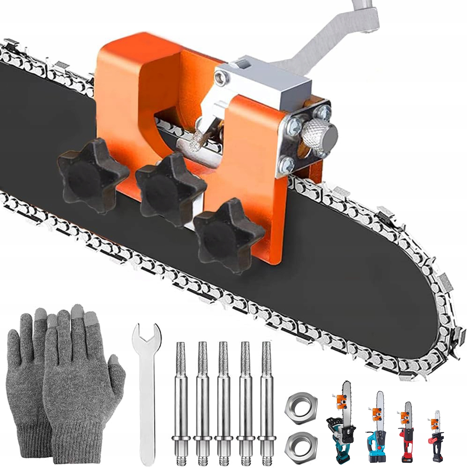 ПРОФЕССИОНАЛЬНЫЙ НАБОР ДЛЯ ЗАТОЧКИ ЦЕПНОЙ ПИЛЫ, ПЕРЧАТКИ, 5 ГОЛОВОК, РУЧНАЯ РУЧКА