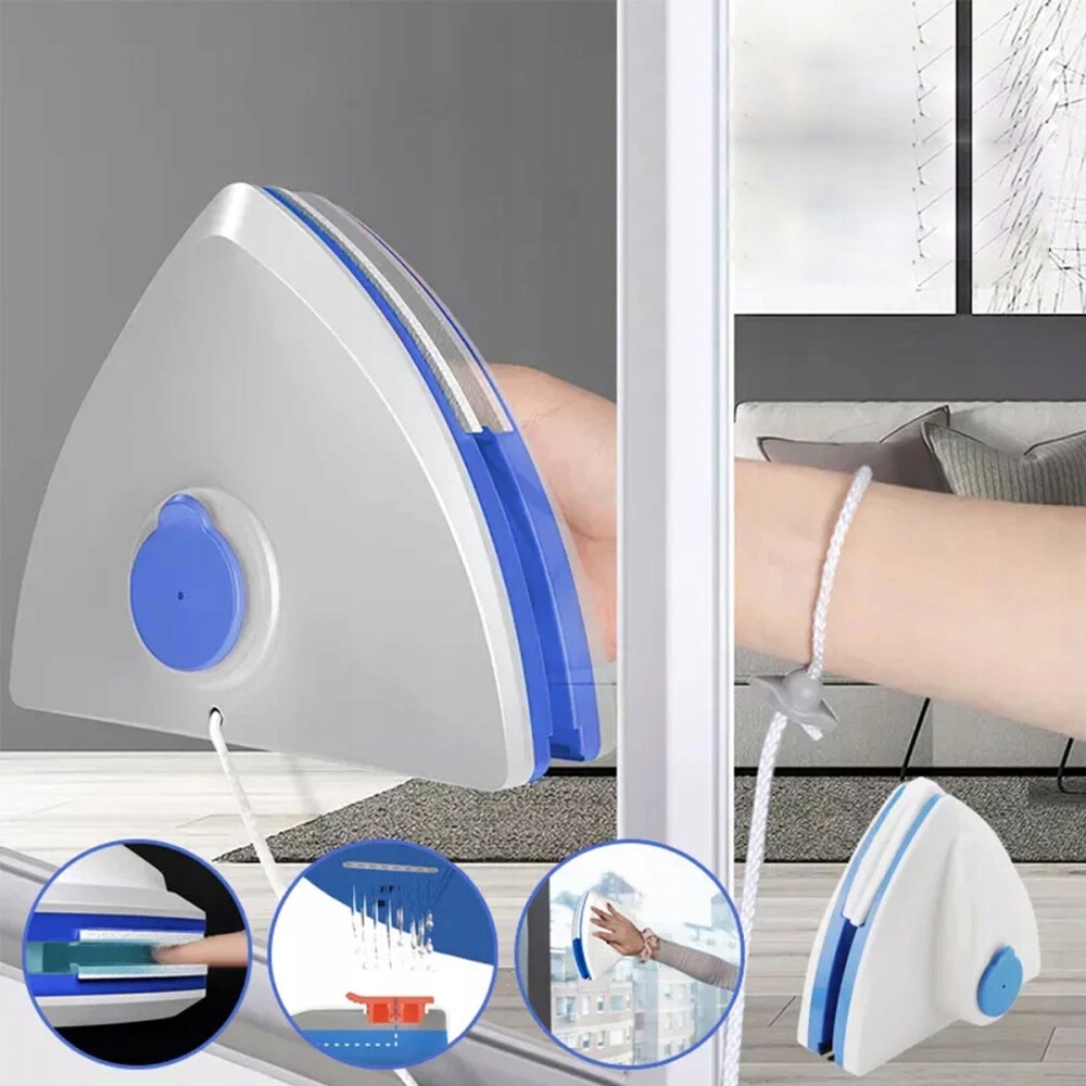оснащен прочными магнитами на обоих концах, обеспечивая безопасное монтаж для высоких окон, облегчая очистку как изнутри, так и снаружи.