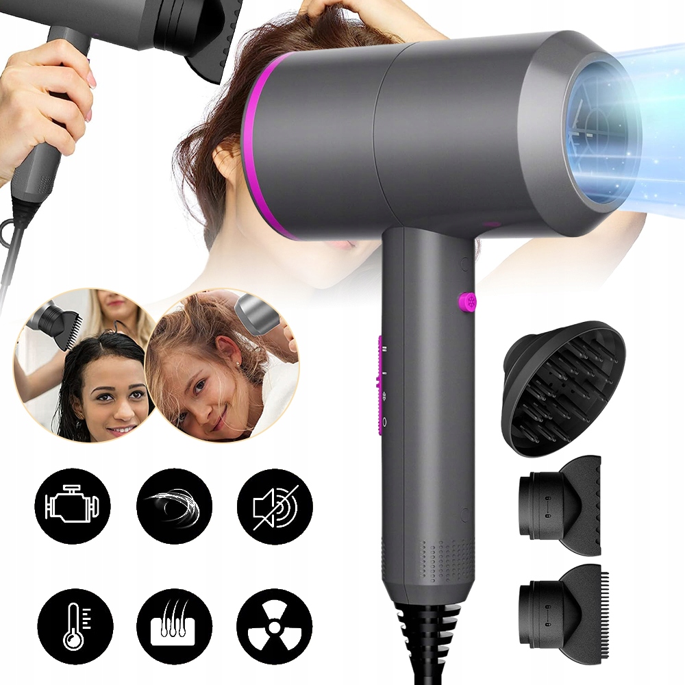 - -Оснащен насадкой для сушки, насадкой для укладки и насадкой для укладки, удобен для сушки прямых волос и укладки вьющихся волос.