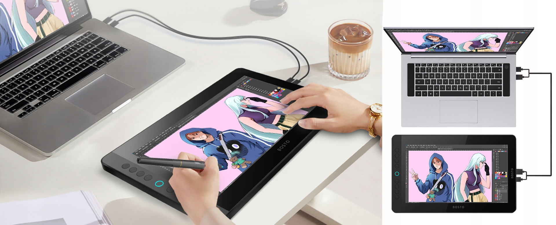- Графический планшет BOSTO имеет широкий угол обзора 178°, чрезвычайно четкое изображение и высокое качество без выцветания!