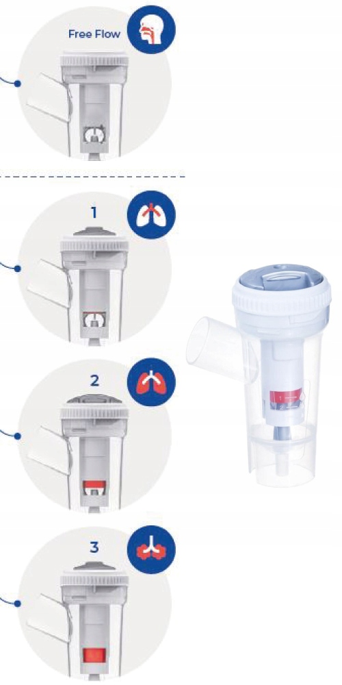 Частицы размером более 7 мкм (распылитель в положении 0) для верхних дыхательных путей, высокая скорость распыления;
