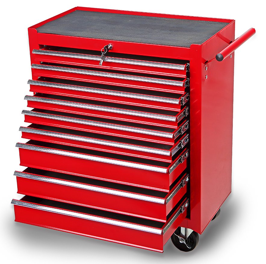 Тележка для инструментов, шкаф для мастерской с 9 ящиками, красная.