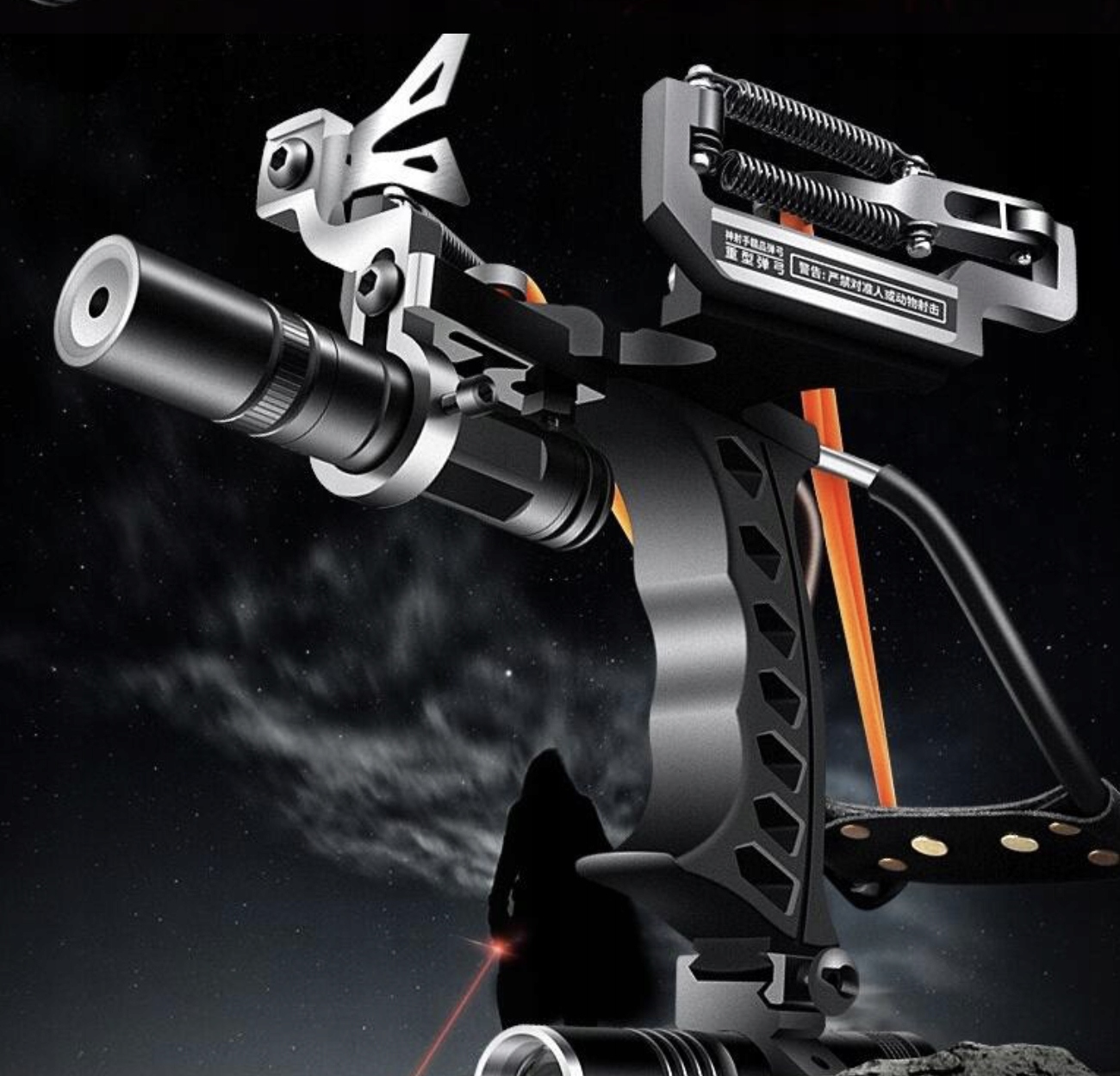 - Лазерный прицел в виде зеленого лазера, прикрепленного к передней части рогатки, мощностью 500 мВт облегчит наведение на выбранную цель.