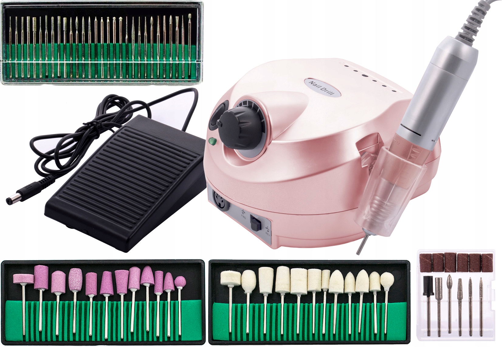 Профессиональный фрезер для маникюра и педикюра, с регулировкой скорости до 35 000 оборотов в минуту. С помощью этого устройства вы выровняете и отполируете ногти, удалите омертвевшую кожу и остатки кончиков ногтей.