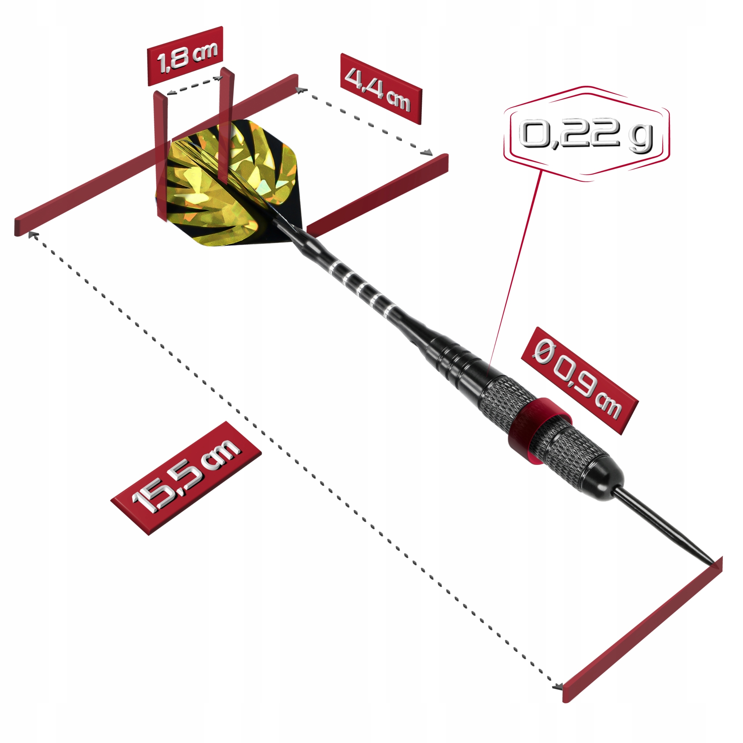 дротики в длину 15,5 см и вес 22 г , что делает их великолепными во время игры. Сделанные из чугуна не ломаются, поэтому они смогут безупречно служить безупречно.