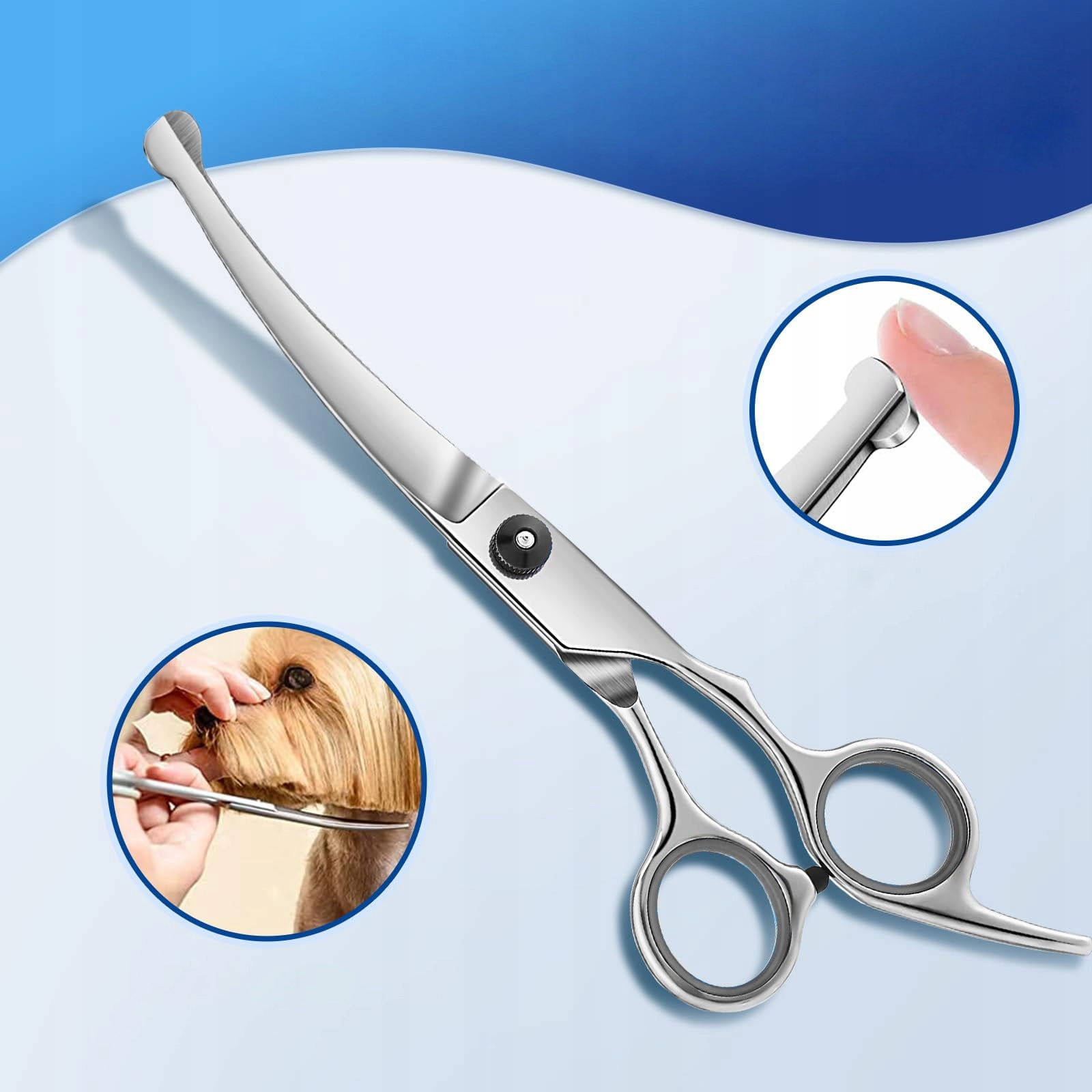 ✅ согнутые ножницы - Упростить достижение чувствительных мест (то есть глаза, нос, лапы). Округлые советы предотвращают резку, а удобно профилированные ручки делают маневрирование в твердых местах.