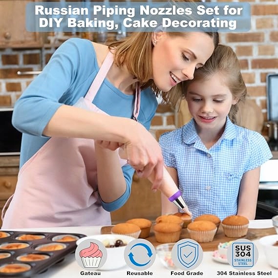 Идеально подходит для украшения тортов, кексов и печенья. Благодаря различным советам вы сможете добиться цветочных эффектов, роз, листьев и звезд. Отличный подарок любителям выпечки. 🌷🎂