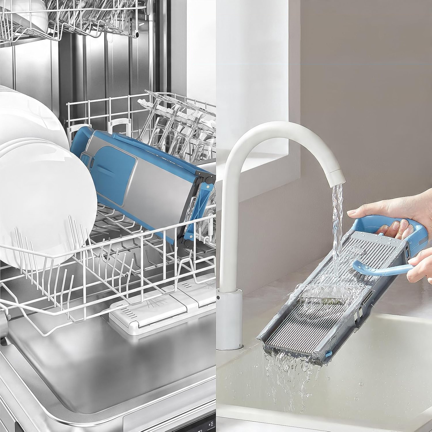 🎁🎁🎁 【Идеальный подарок】 идеальный подарок на Рождество или для нового дома. Небольшой размер мандолины означает, что он занимает очень мало места на стойке или в шкафу, что делает его отличным инструментом на каждой кухне. Приготовьтесь изменить метод приготовления овощей благодаря этому универсальному инструменту, оснащенный скрытым лезвием, обеспечивающим более безопасное использование!