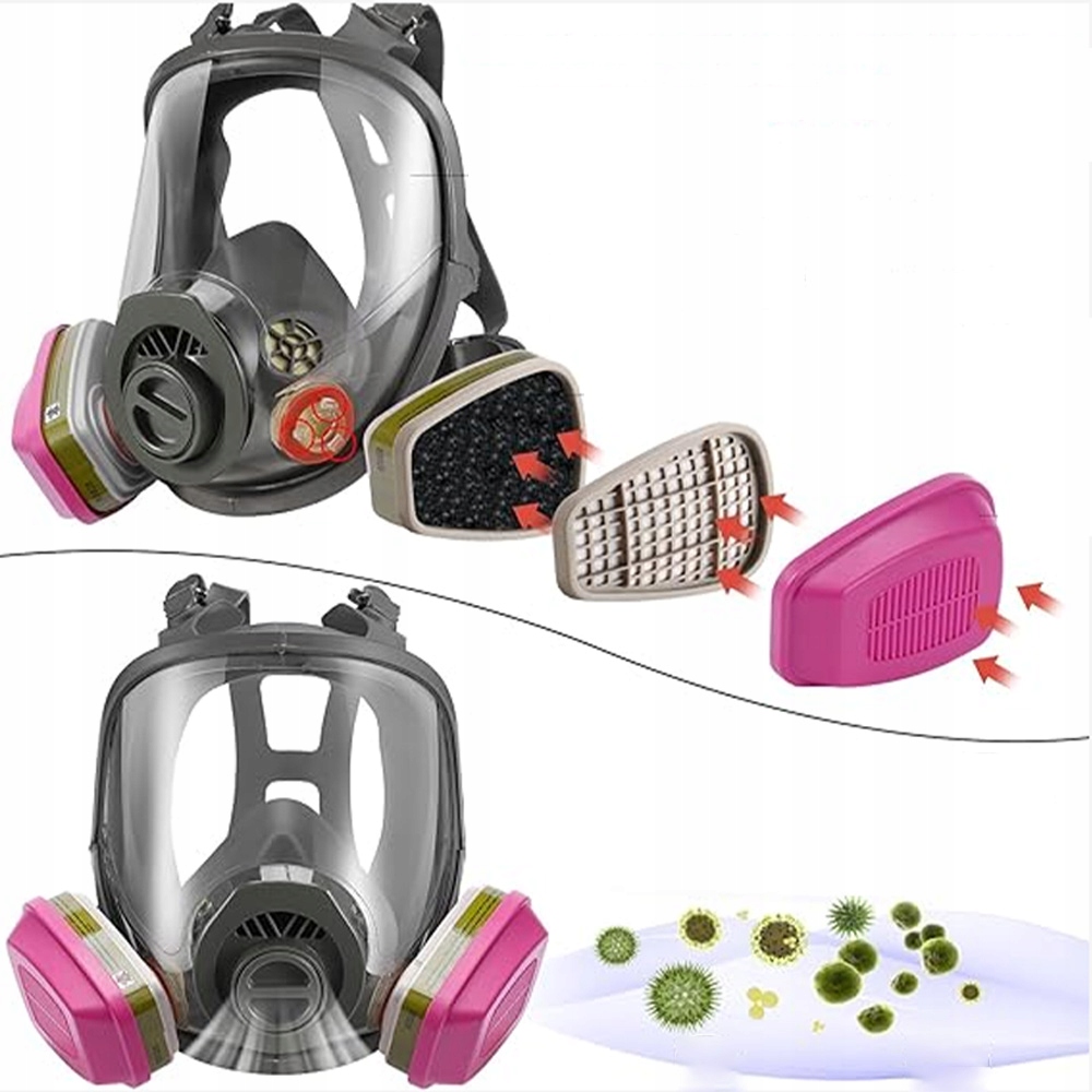 🟩🟩【Широкий спектр применения】Этот полнолицевой противогаз оснащен противотуманным, устойчивым к царапинам и ударам большим лицевым щитком, который обеспечивает комплексную защиту лица. Подходит для защитных рабочих сред, включая химикаты и металлы, краску, формальдегид и другие раздражающие газы в таких областях, как промышленность, сельское хозяйство, реагирование на чрезвычайные ситуации, покраска, сварка, механическая обработка, деревообработка, ремонт, уборка, ремонт автомобилей, горнодобывающая промышленность, полировка и другие.< /п>