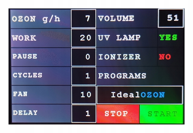 - автоматический расчет параметров озонирования на основе заданного объема помещения