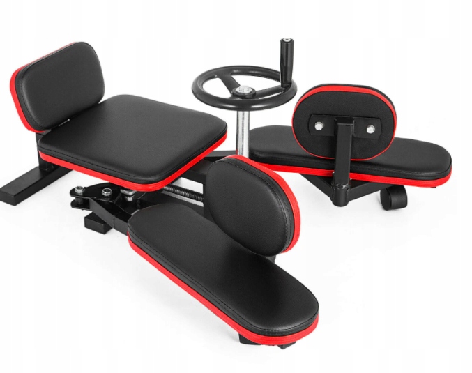 Устройство регулируется с помощью «руля», как на фотографиях, которые позволяет очень плавно устанавливать угол и углублять растяжение мышц.