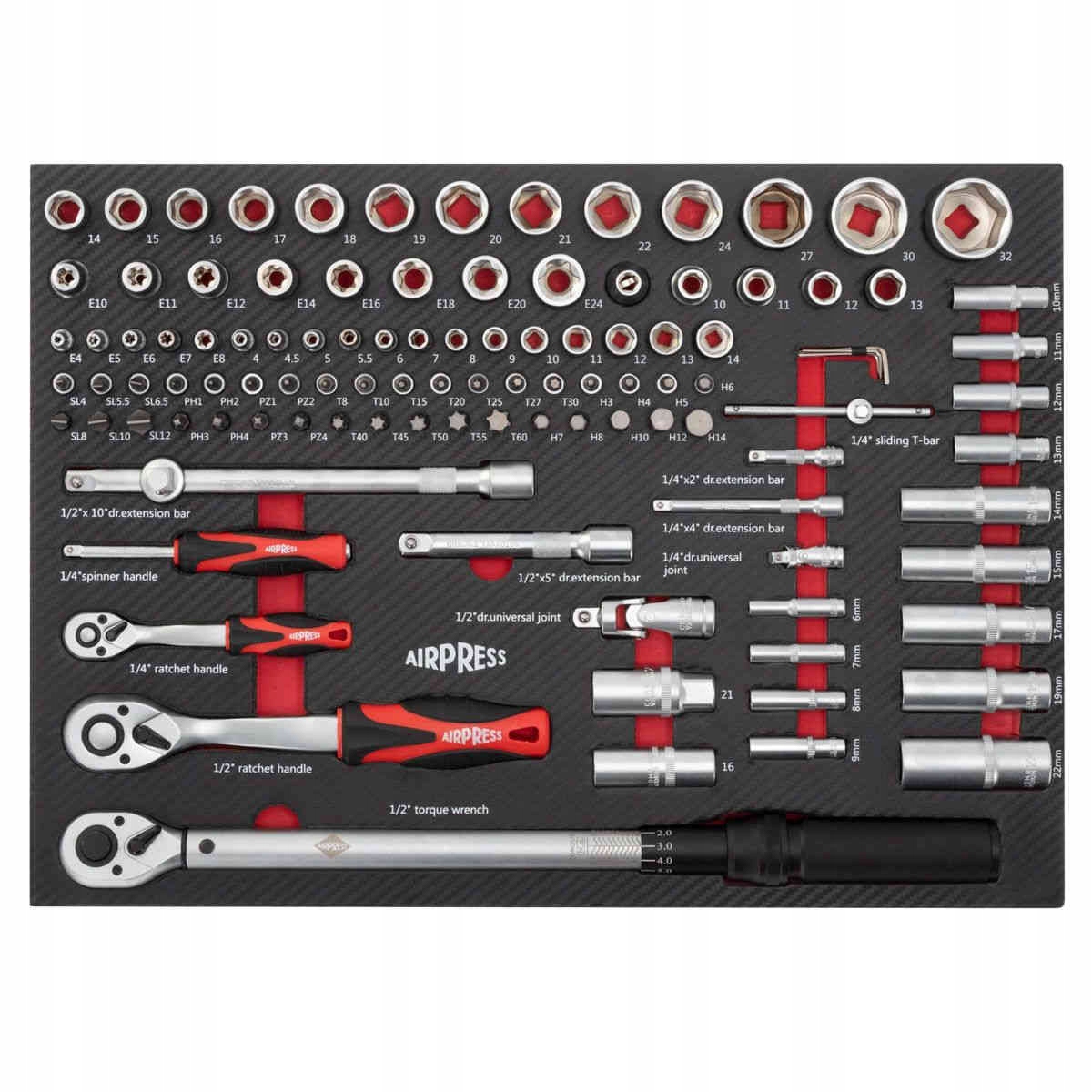 Тележка для инструментов Airpress 79169 — это профессиональная мобильная тележка для инструментов, оснащенная 7 ящиками и 215 высококачественными инструментами.