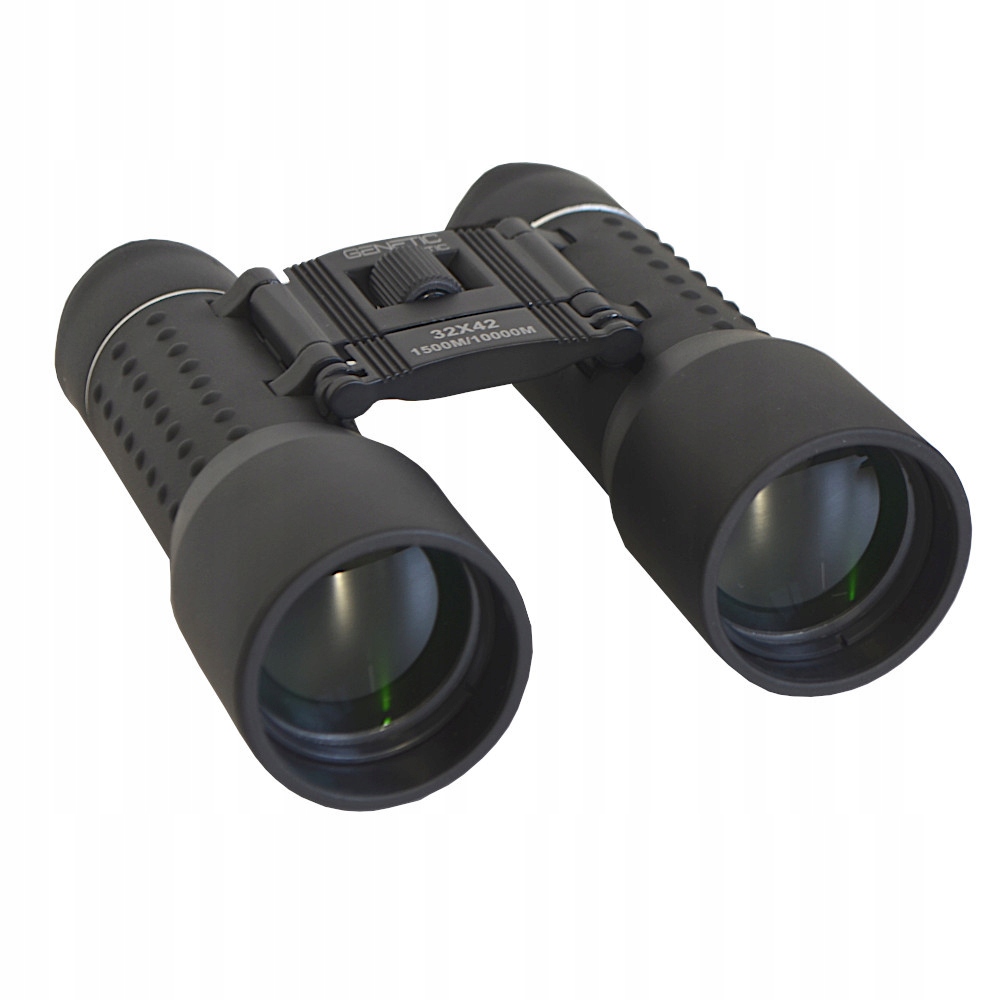 Очень прочные бинокли с увеличением x32 и средней линзой 42 мм в небольших ромиах, изготовленных из пластика. Защитный слой представляет собой текстурированную резину, которая увеличивает захват руки. Объективы покрыты антирефлексивным покрытием. Бинокль оснащен центральной ручкой коррекции фокусировки. Включает в себя чистящую ткань и обложка